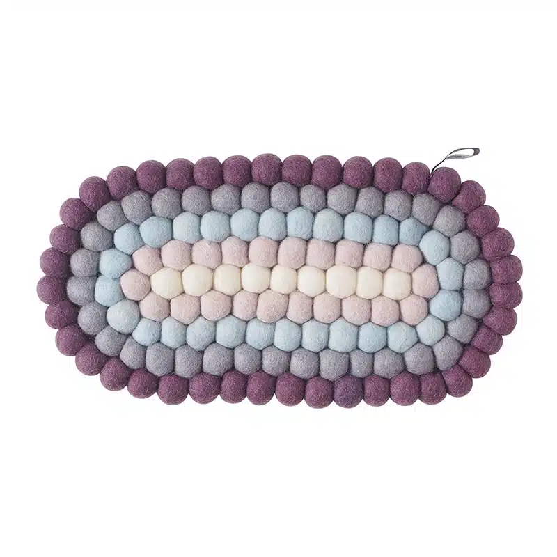 De kleurrijke pannenonderzetter is gemaakt van natuurlijke kleurstoffen. De kleuren kunnen door bloodstelling aan zonlicht vervagen. Pan niet direct van het vuur op de onderzetter plaatsen. De onderzeter kan met een handwasje gereinigd worden. Na het wassen, laten drogen en het vuil daarna zachtjes afvegen. Als de onderzetter vochtig is, wordt afgeraden deze te gebruiken, omdat de kleuren dan kunnen vervagen.