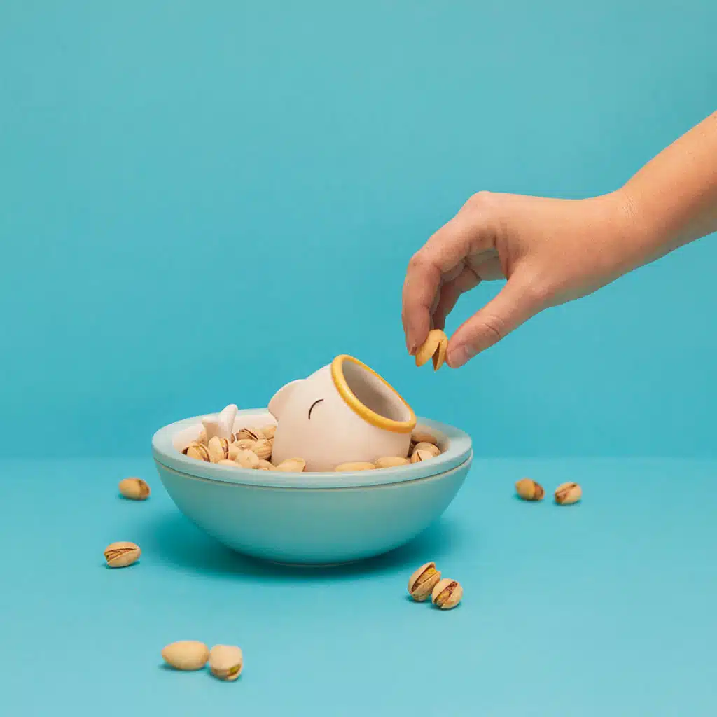 Keramieken schaaltje in de vorm van een vogeltje, voor borrelhapjes.
