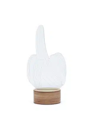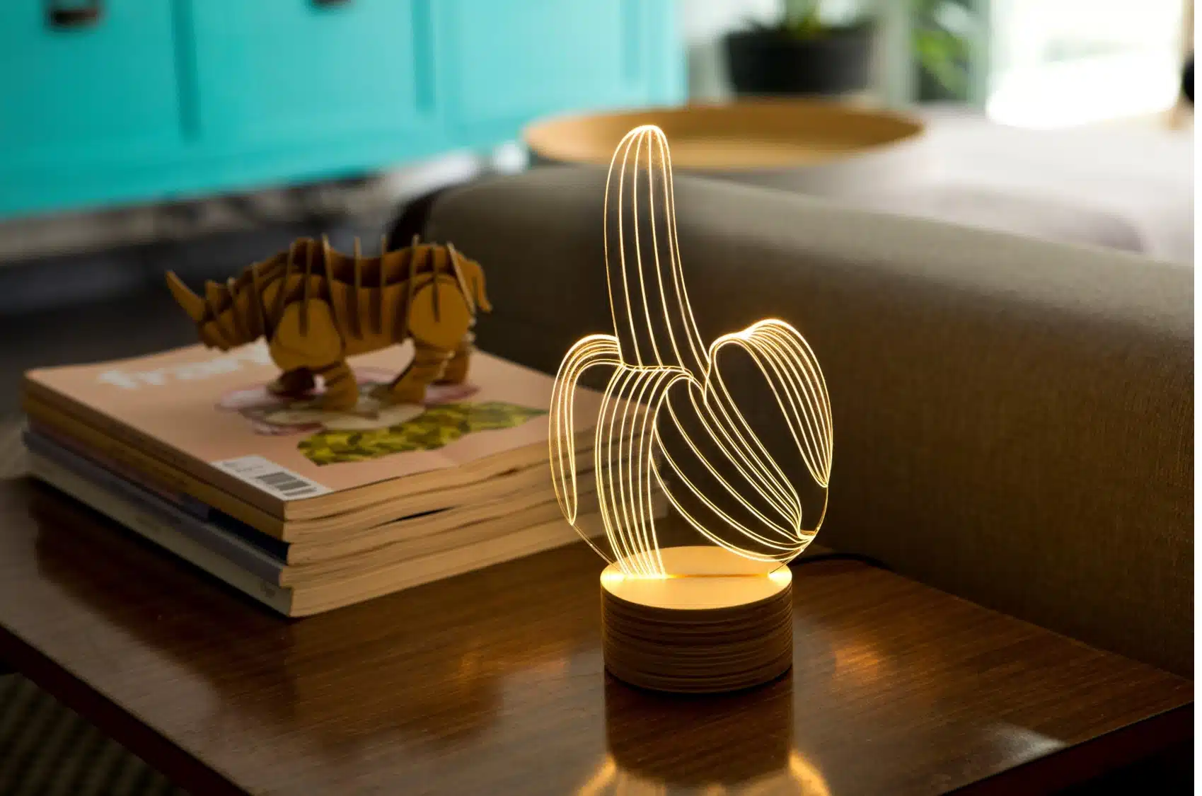 waarin met een laser een ontwerp gegraveerd is. Wanneer de lamp aan