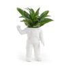 Grote zwaaiende plantenpot in de vorm van een astronaut.