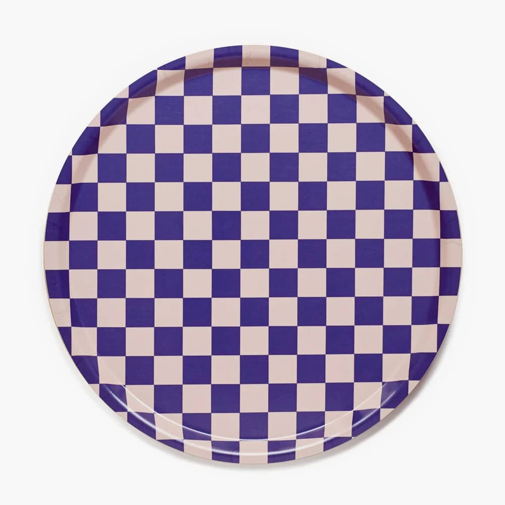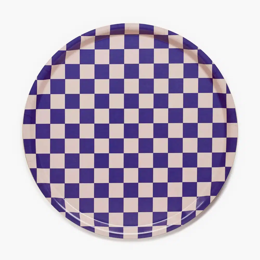Blu Kat dienblad indigo/almond checker rond 38cm