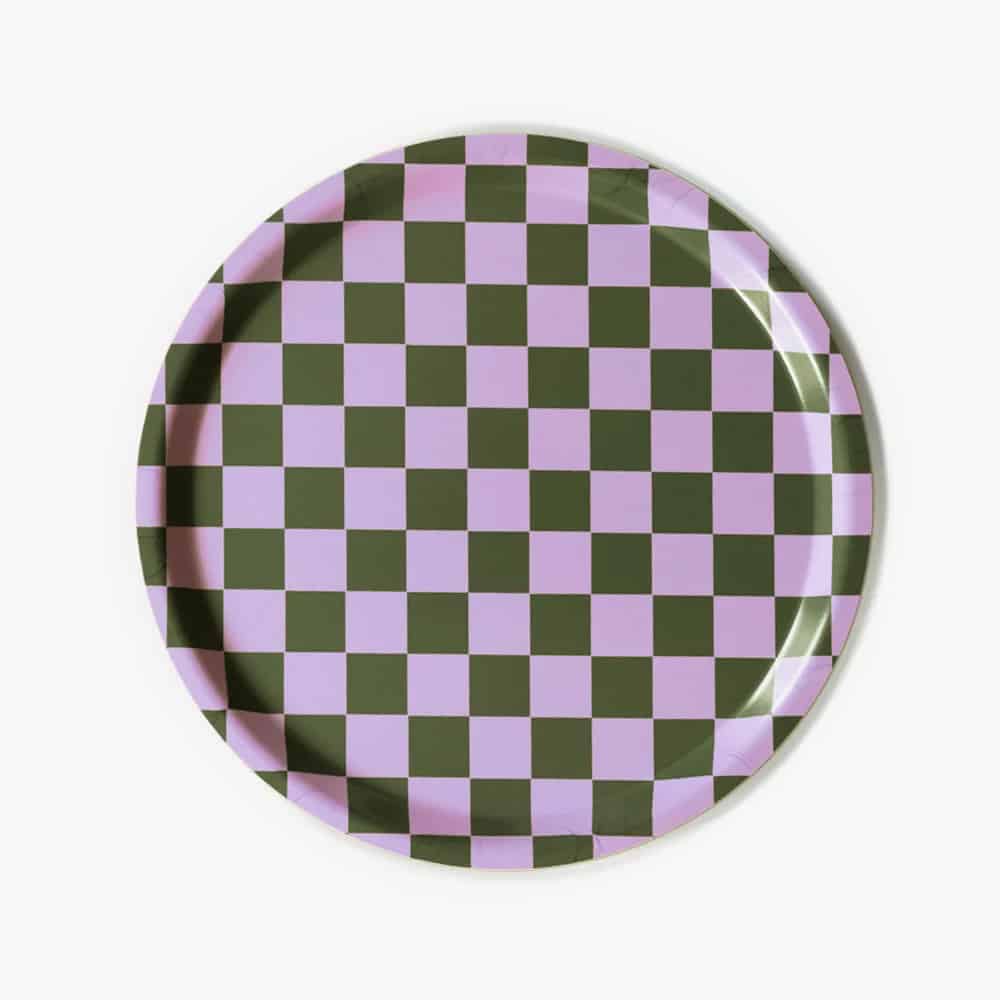 Blu Kat dienblad lila/olive checker rond 31cm