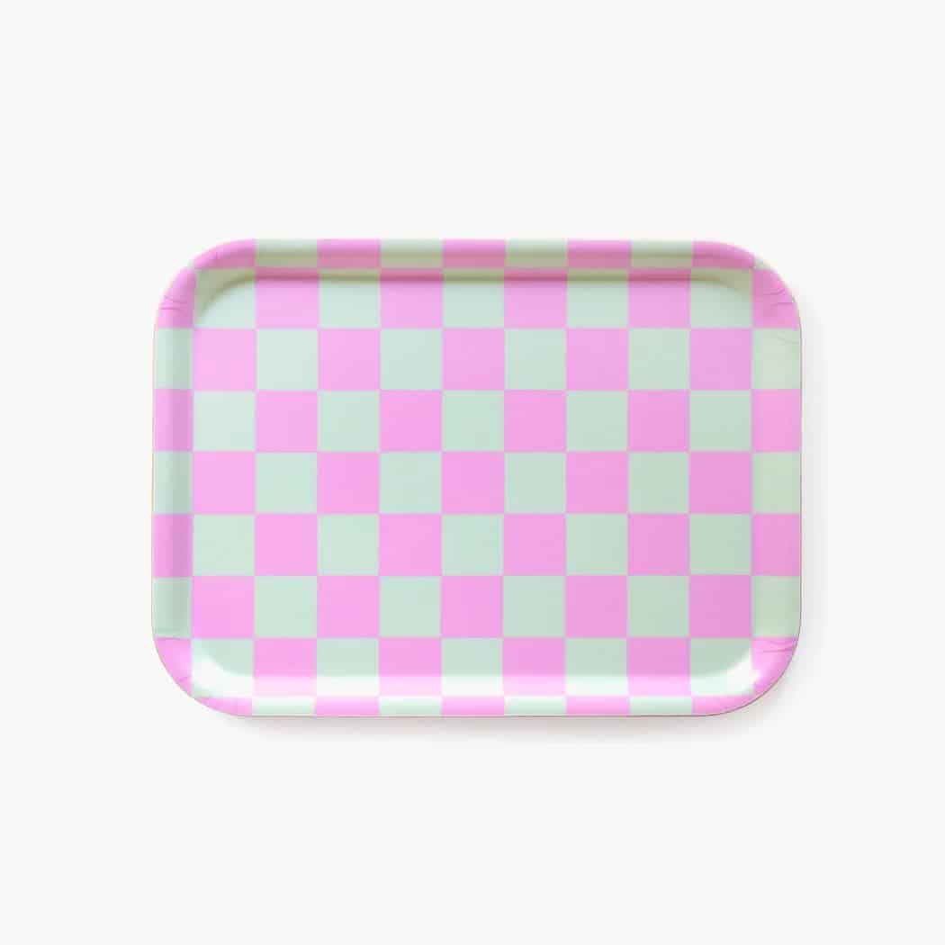 Blu Kat Dienblad mint/peony checker rechthoekig 27x20cm