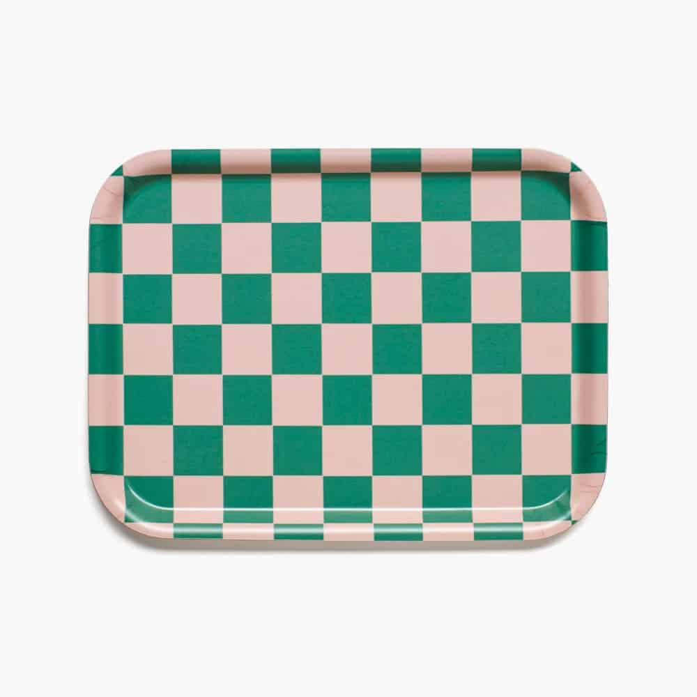Blu Kat Dienblad peach/tulip checker rechthoekig 27x20cm