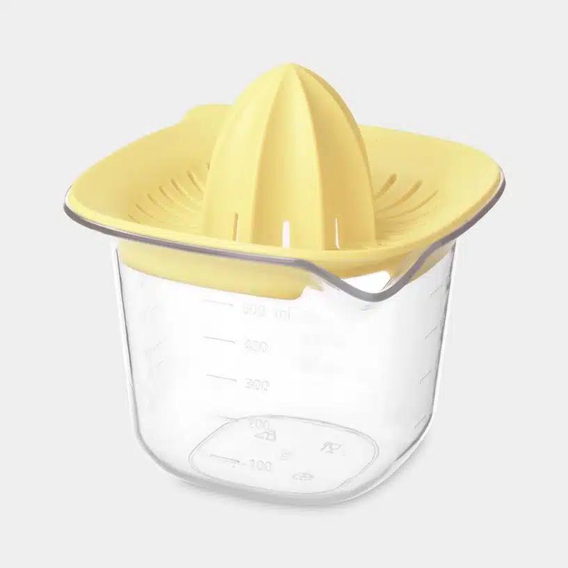 Vers geperst sap. Pers waarbij je handig de hoeveelheid geperst sap kan aflezen