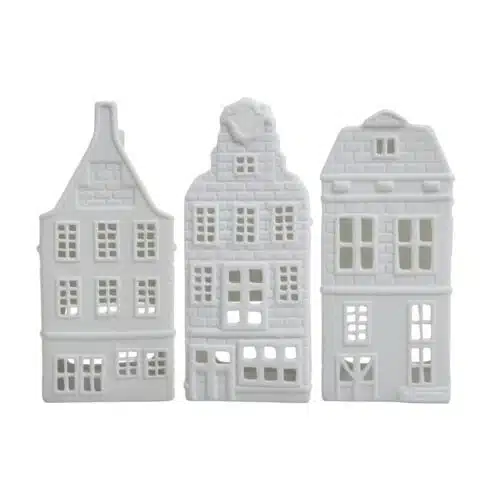Deze waxinehouder in de vorm van een grachtenhuisje is gemaakt van