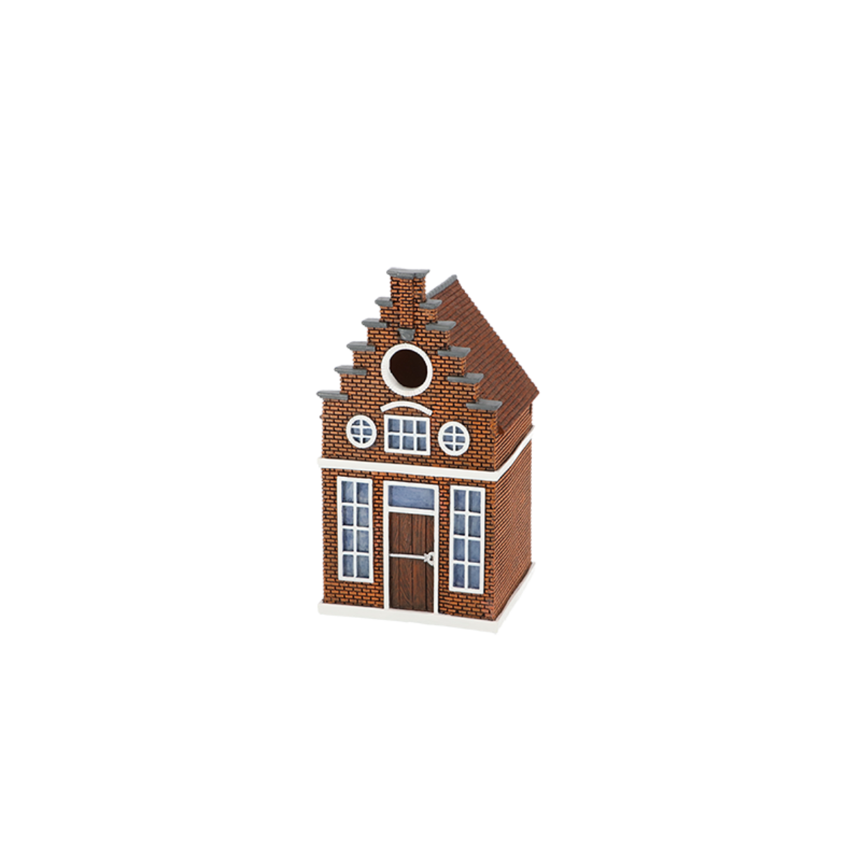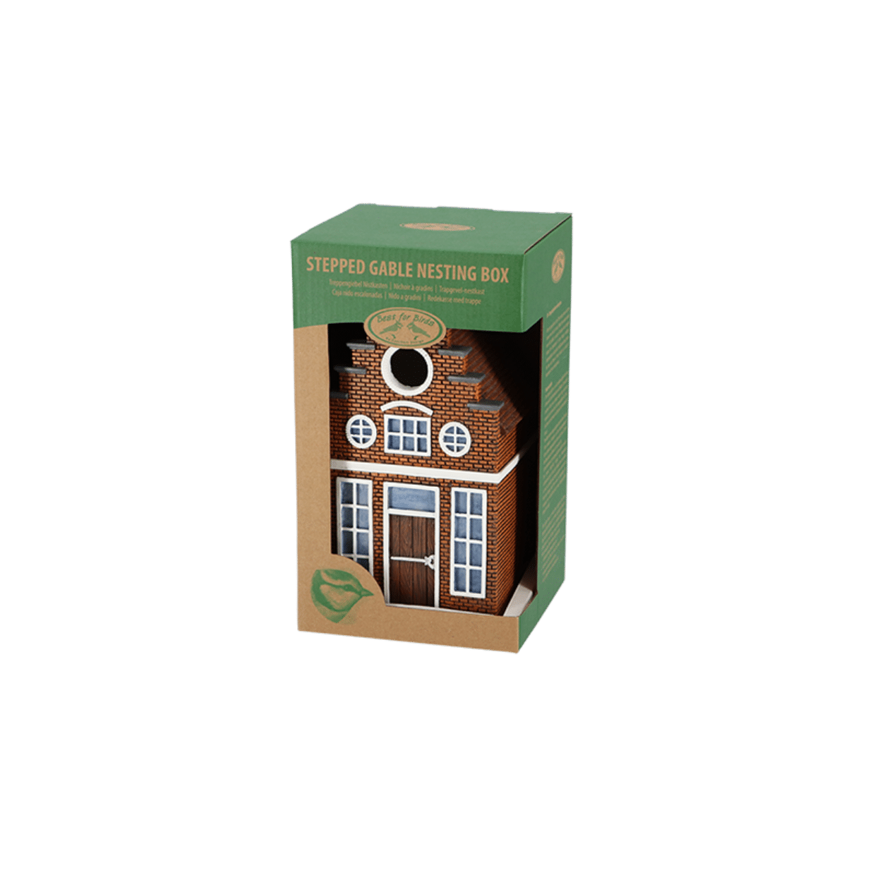 Deze mooie nestkast biedt vogels een plek om te rusten en te nestelen, maar dan in de vorm van een klassiek grachtenpand.