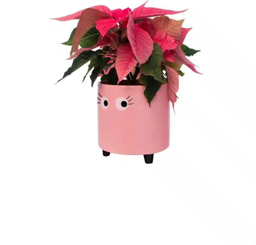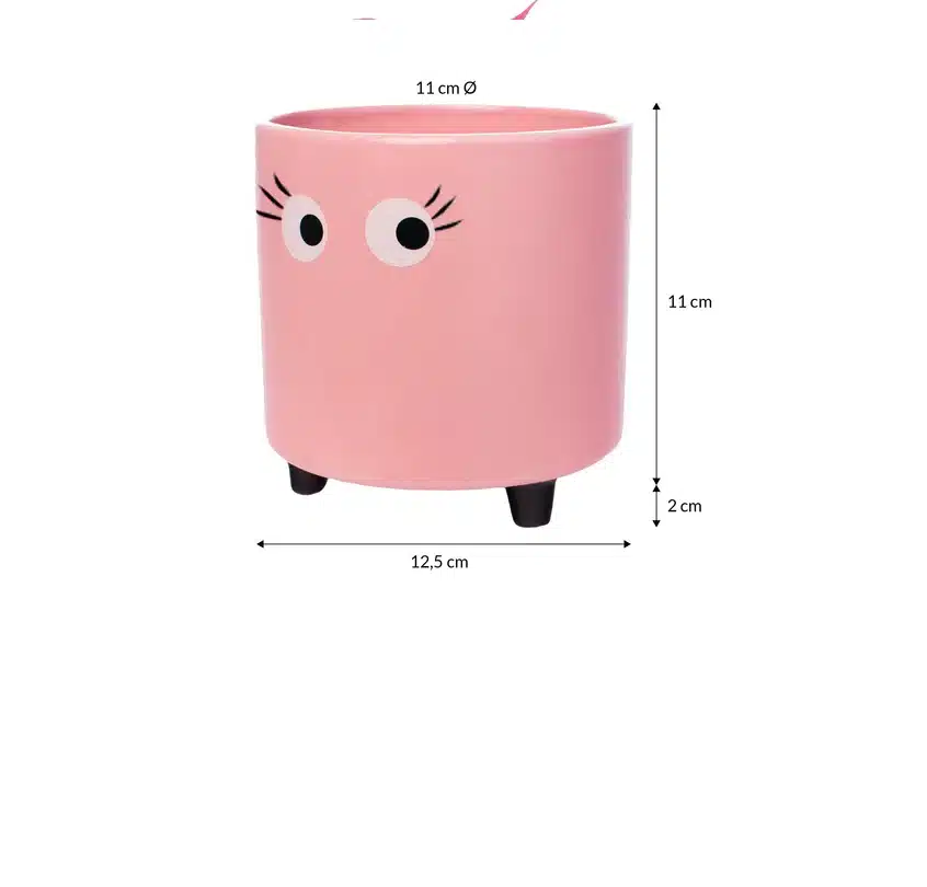 Bloempot in het roze met oogjes