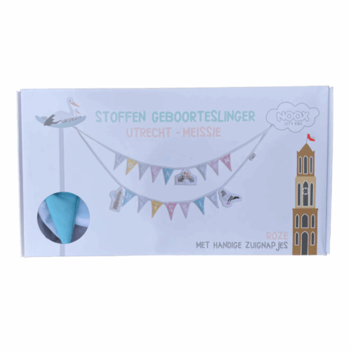 De geboorteslinger wordt geleverd met zuignapjes om de slinger aan het raam te hangen. Leer jullie baby zo snel mogelijk het meest ultieme Uteregse woord door bij de geboorte van haar deze slinger voor het raam te hangen. Hoera een meissie! De slinger is ook verkrijgbaar als jochie.