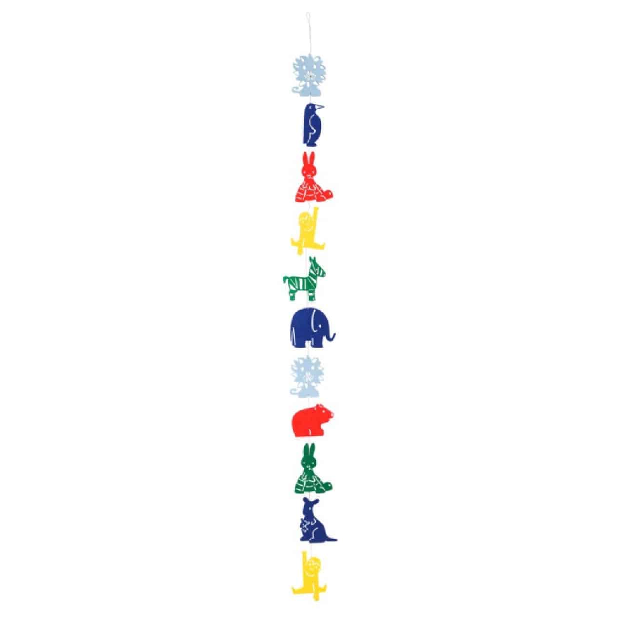 De slinger is 120 cm lang en bestaat uit 11 dieren uit de dierentuin,