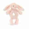 Deze lieve Bashful bunny ring rattle is perfect voor kleine handjes! Gemaakt van superzacht pluche met een lichtgewicht, makkelijk vast te houden ring en een zacht rammeltje bij beweging. Ideaal voor de allerkleinste om te ontdekken, knuffelen en mee te spelen.
