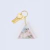 sleutelhanger is gevuld met een gekleurde vloeistof en witte irriserende
