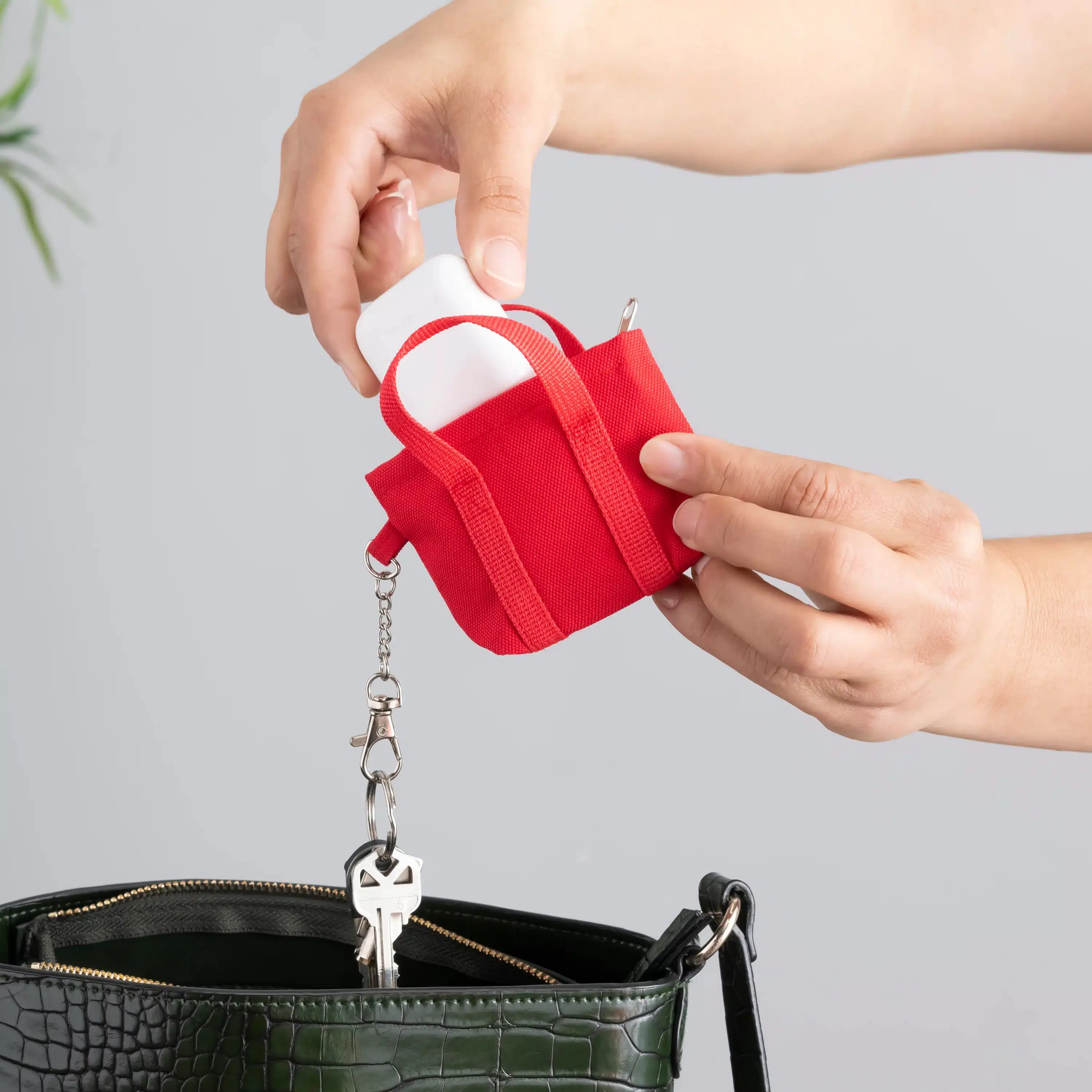 Dit minitasje aan je sleutelhanger houdt je oortjes veilig!