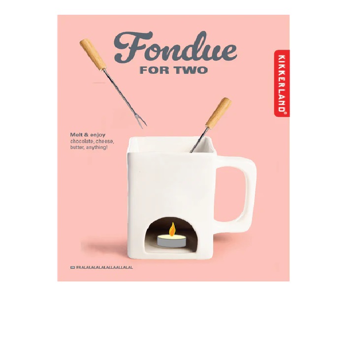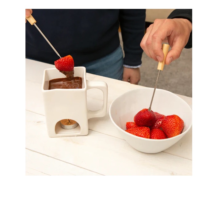 Deze stijlvolle mok is ideaal om gezellig samen te fonduen. Inclusief twee fonduevorken, voeg een theelichtje toe en fonduen maar!