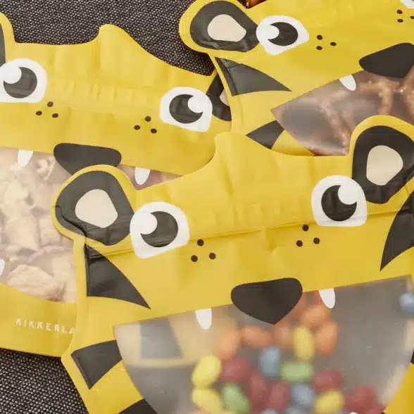 Herbruikbaar én hersluitbaar zakje in de vorm van een tijger.
