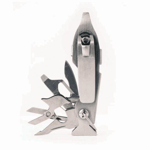 Multifunctioneel ontwerp: Bevat een tang, nagelknipper, knoopklem, mes, schroevendraaier, splitringopener, schaar, haak-oog reiniger en een koordring.