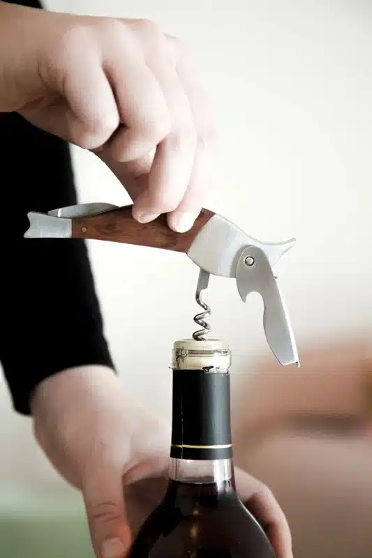 Een roestvrijstalen kurkentrekker en flesopener