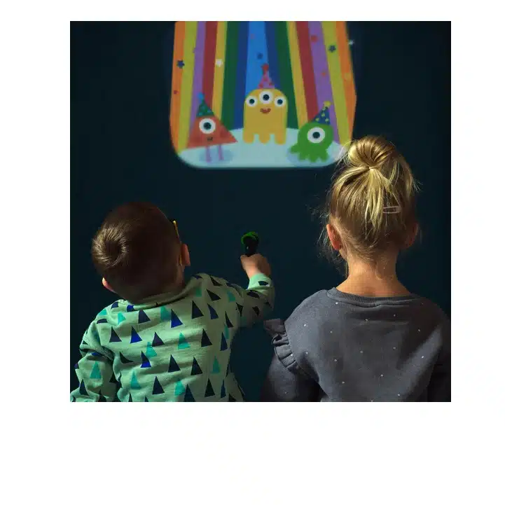 Zaklamp die verhalen toont op de muur