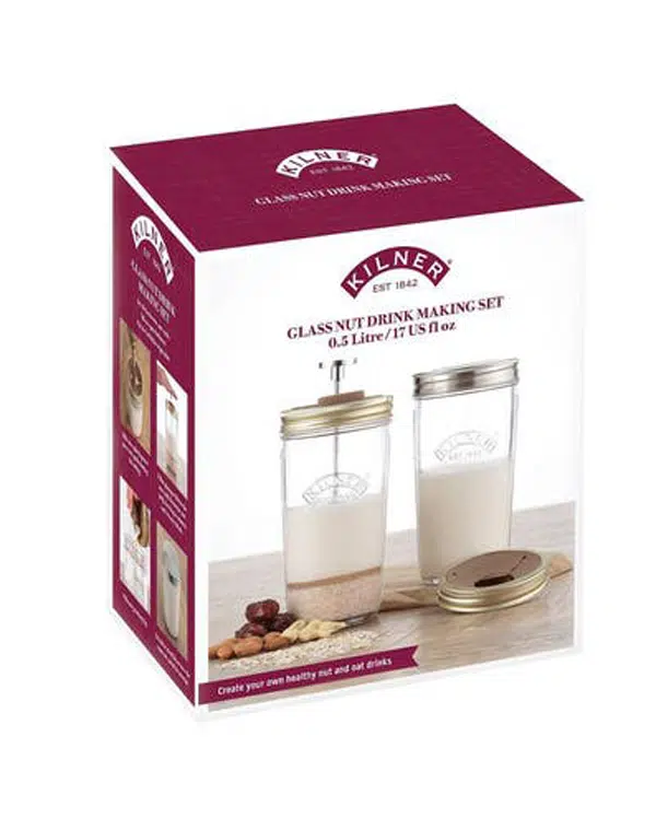 De ‘Kilner Nut Drinks Maker Kit’ maakt het gemakkelijk om plantaardige dranken te maken van noten, haver, kokos, rijst of soja. Het grote voordeel van deze gebruiksvriendelijke set is dat u volledig zelf kunt bepalen wat u aan uw dranken toevoegt.
