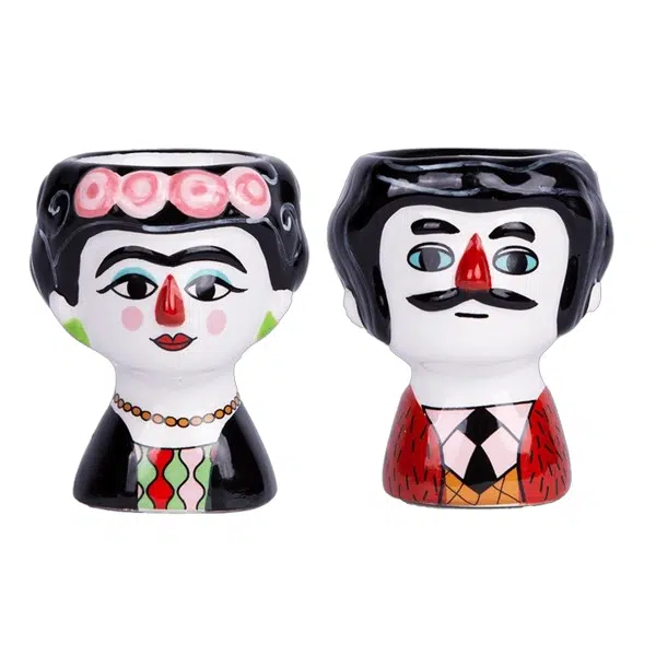 De set bestaat uit twee keramieken eierdoppen met de charmante gezichten van Carlos en Marisol. Met hun levendige kleuren en unieke ontwerp zijn ze niet alleen functioneel, maar ook een echte blikvanger in je keuken.