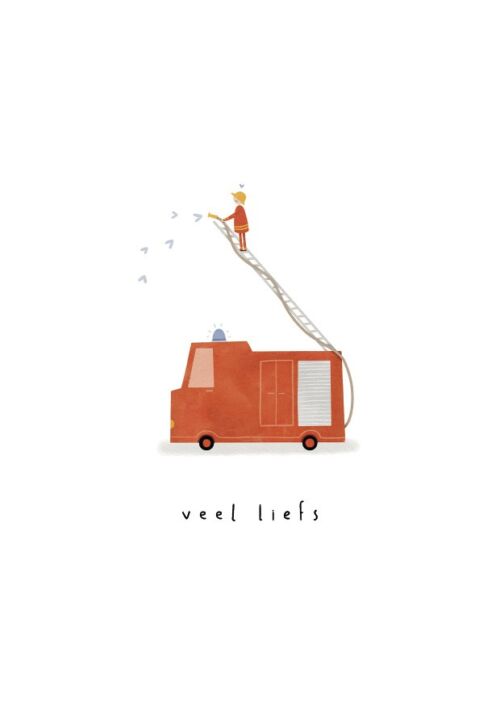 Klein Liefs Gevouwen kaart – veel liefs brandweerwagen