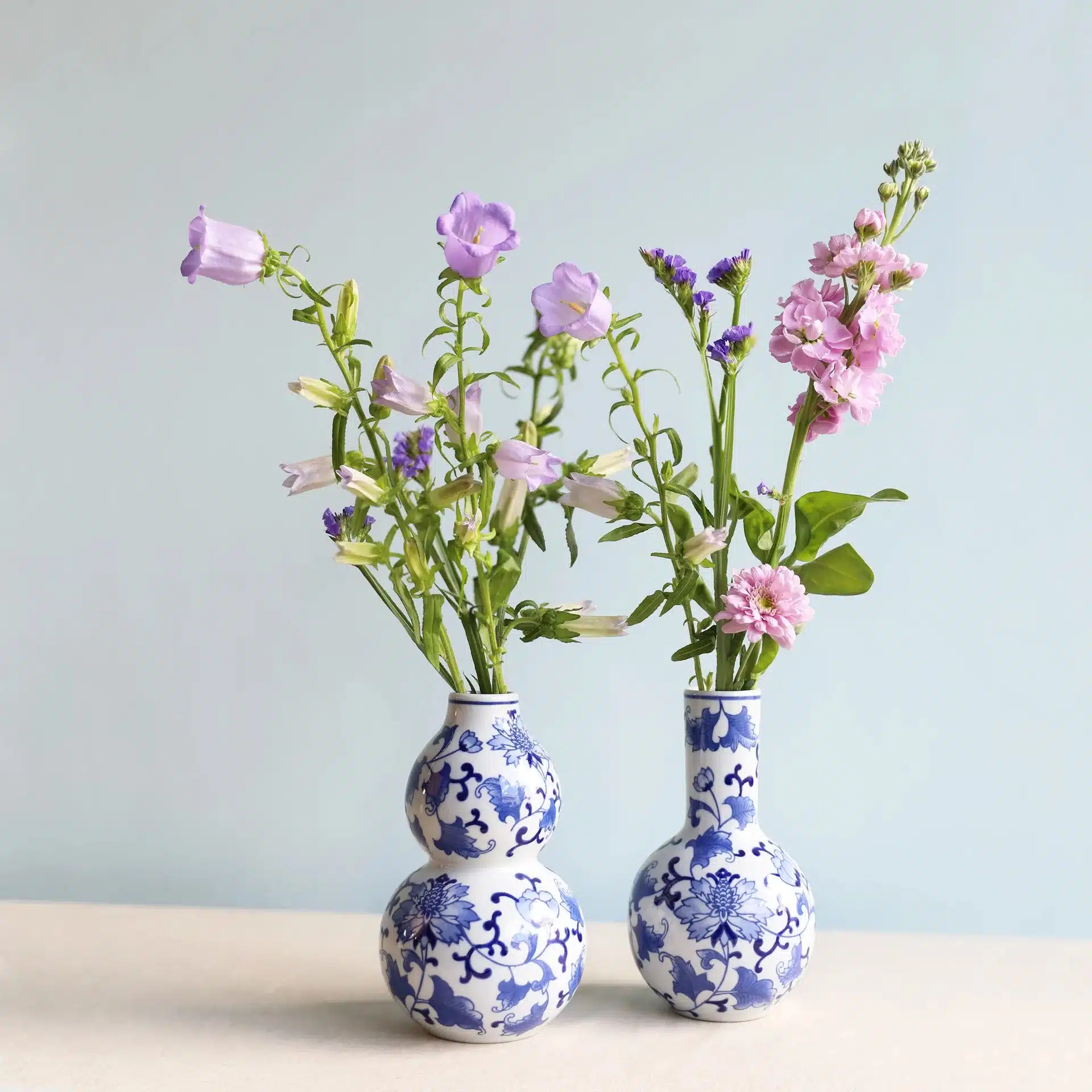 vormen alsook verschillende blauwe bloem versieringen. De vaasjes zijn