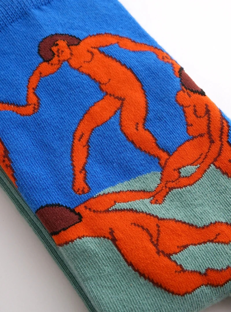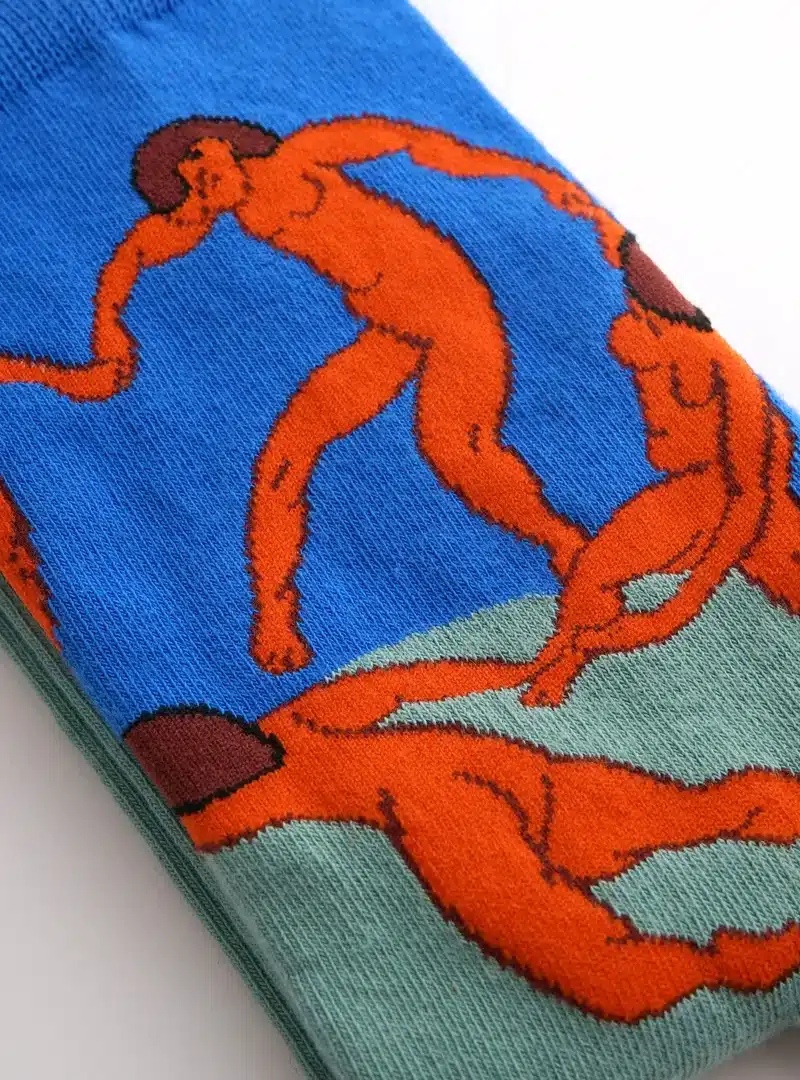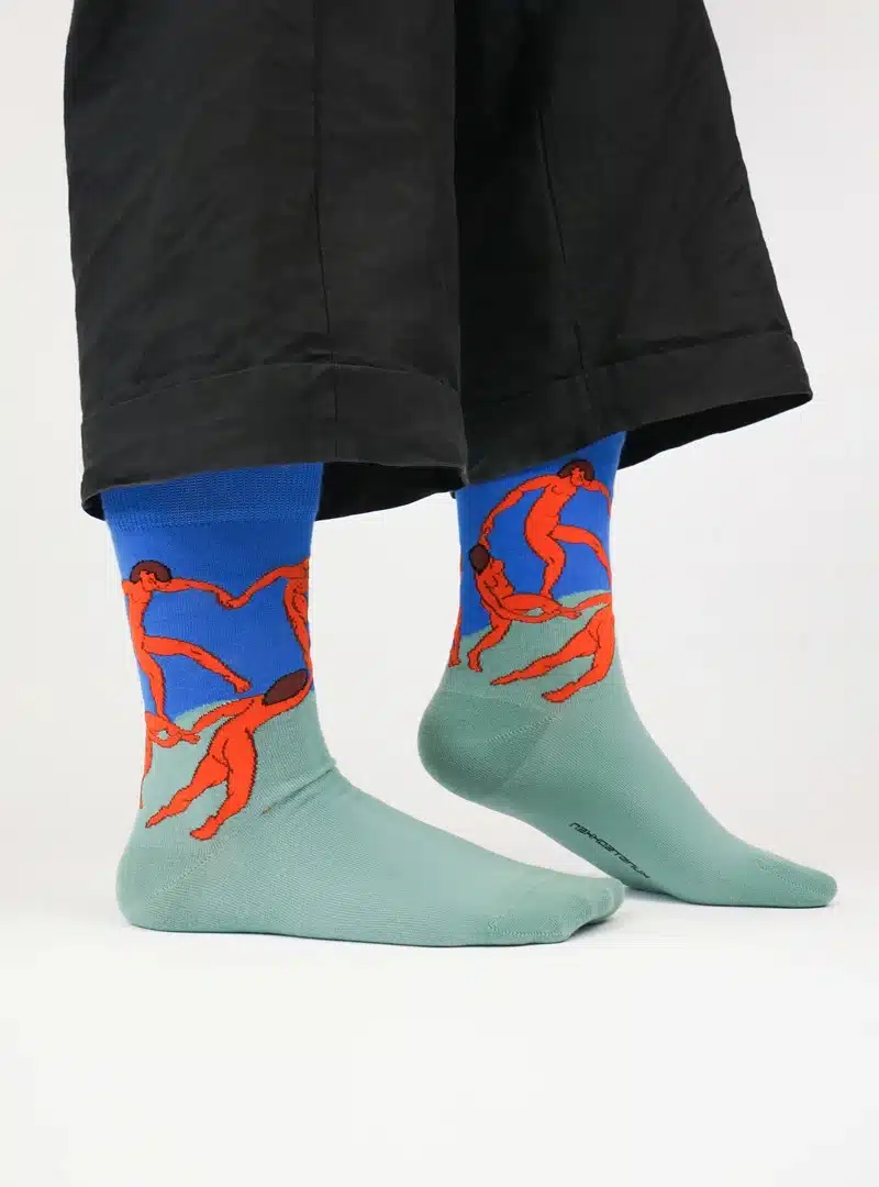 Voeg een artistiek tintje toe aan je outfit en bestel vandaag nog deze prachtige kunstsokken geïnspireerd op Matisse’s “De Dans”.