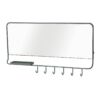 Spiegel in metalenframe met zes haakjes en bakje.