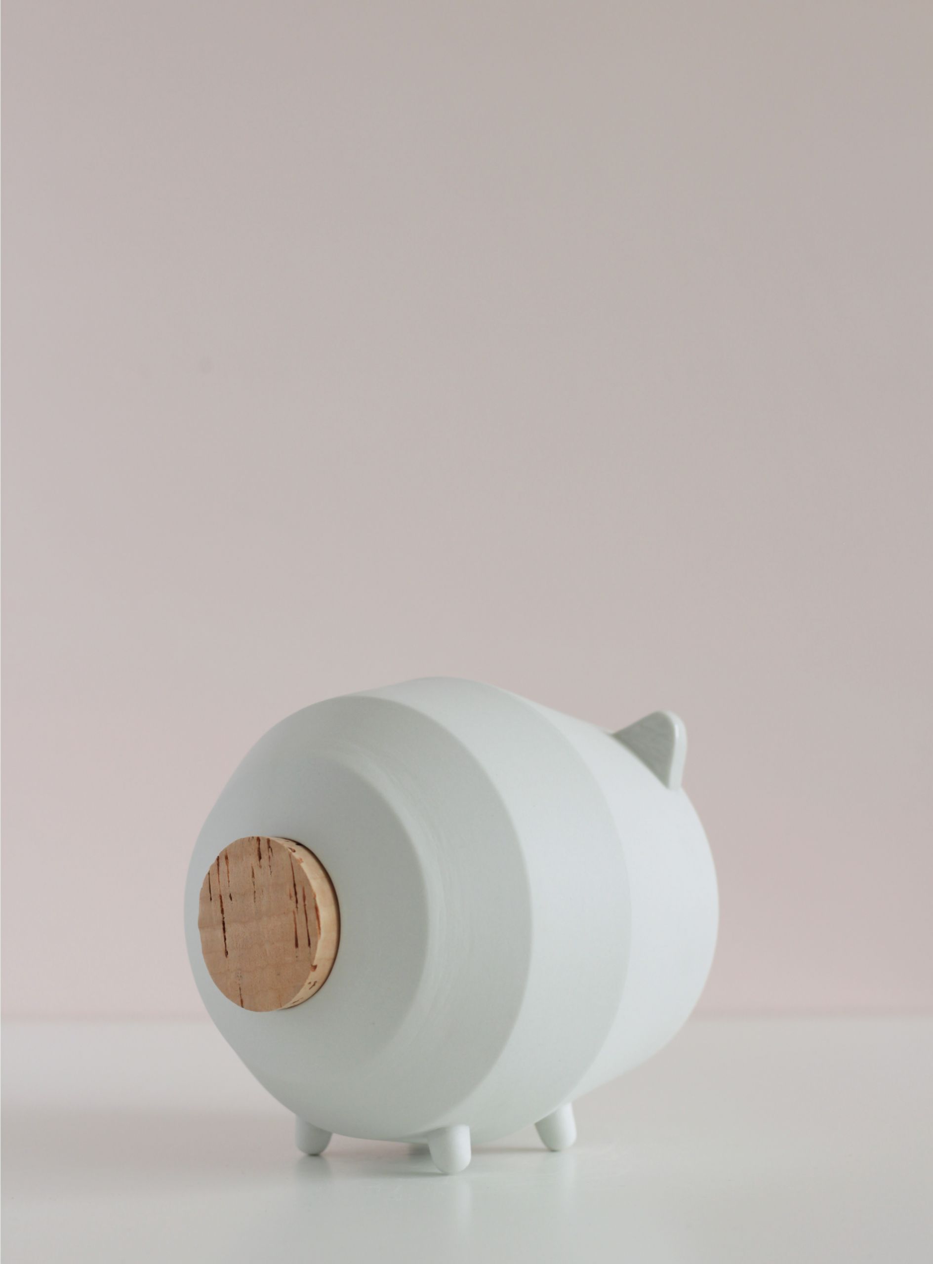 aan de achterkant waar een kurkje inzit. Geef dit leuke spaarvarkentje