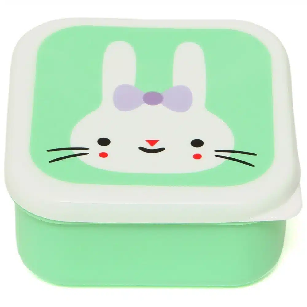 boterhammen 12 x 12 x 5.5 cm, de middelste mint trommel met konijntje