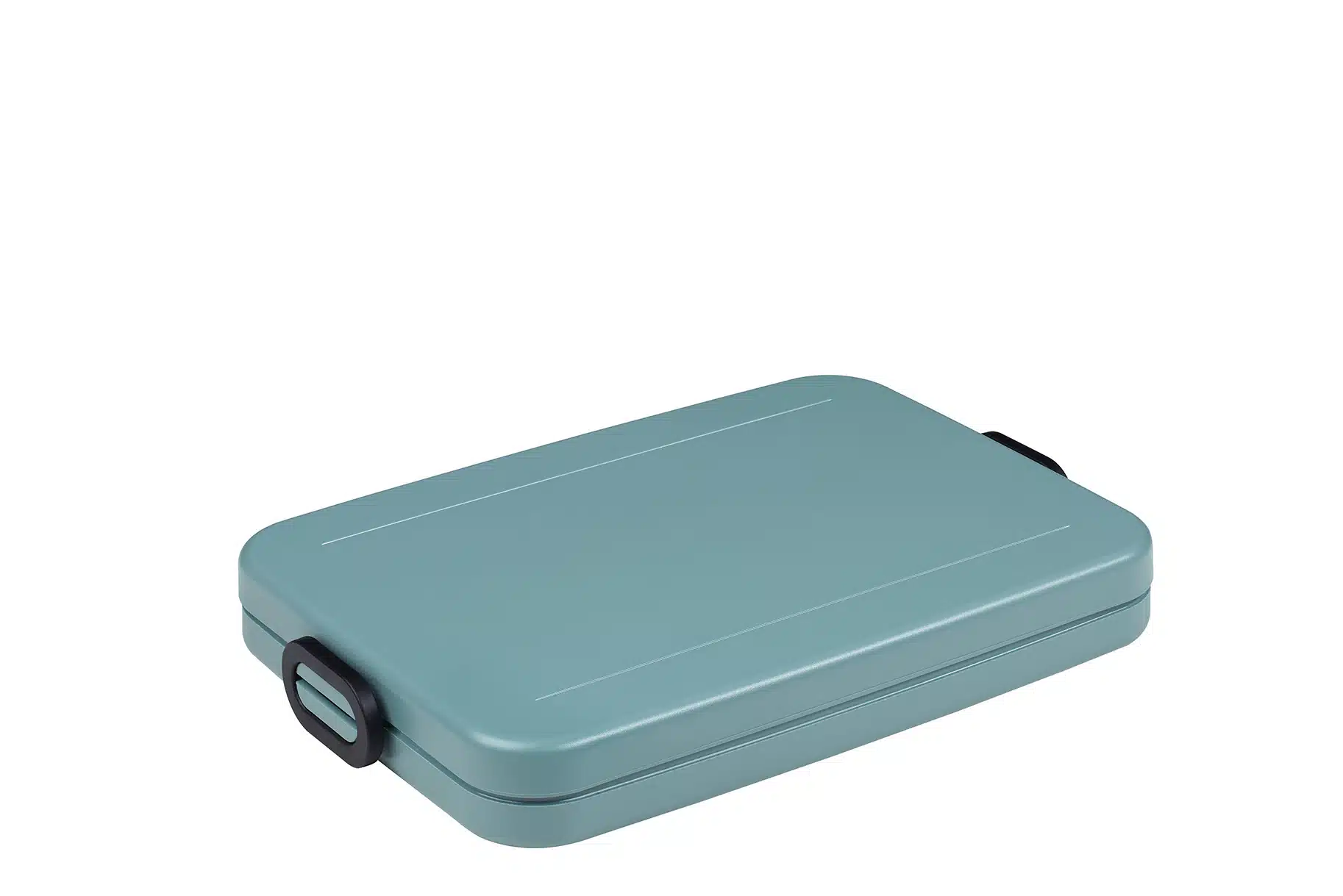 Lunchbox Take A Break flat in de kleur nordic green. Deze platte broodtrommelvan Rosti Mepal past perfect in een laptoptas of rugzak en is geschikt voor maximaal 4 boterhammen. Hij is voorzien van een afdichtring die de inhoud altijd lekker vers houdt. Neem vanaf nu dus uw eigen lunch mee in deze broodtrommel. Dat is niet alleen goedkoop, maar ook lekker en gezond!