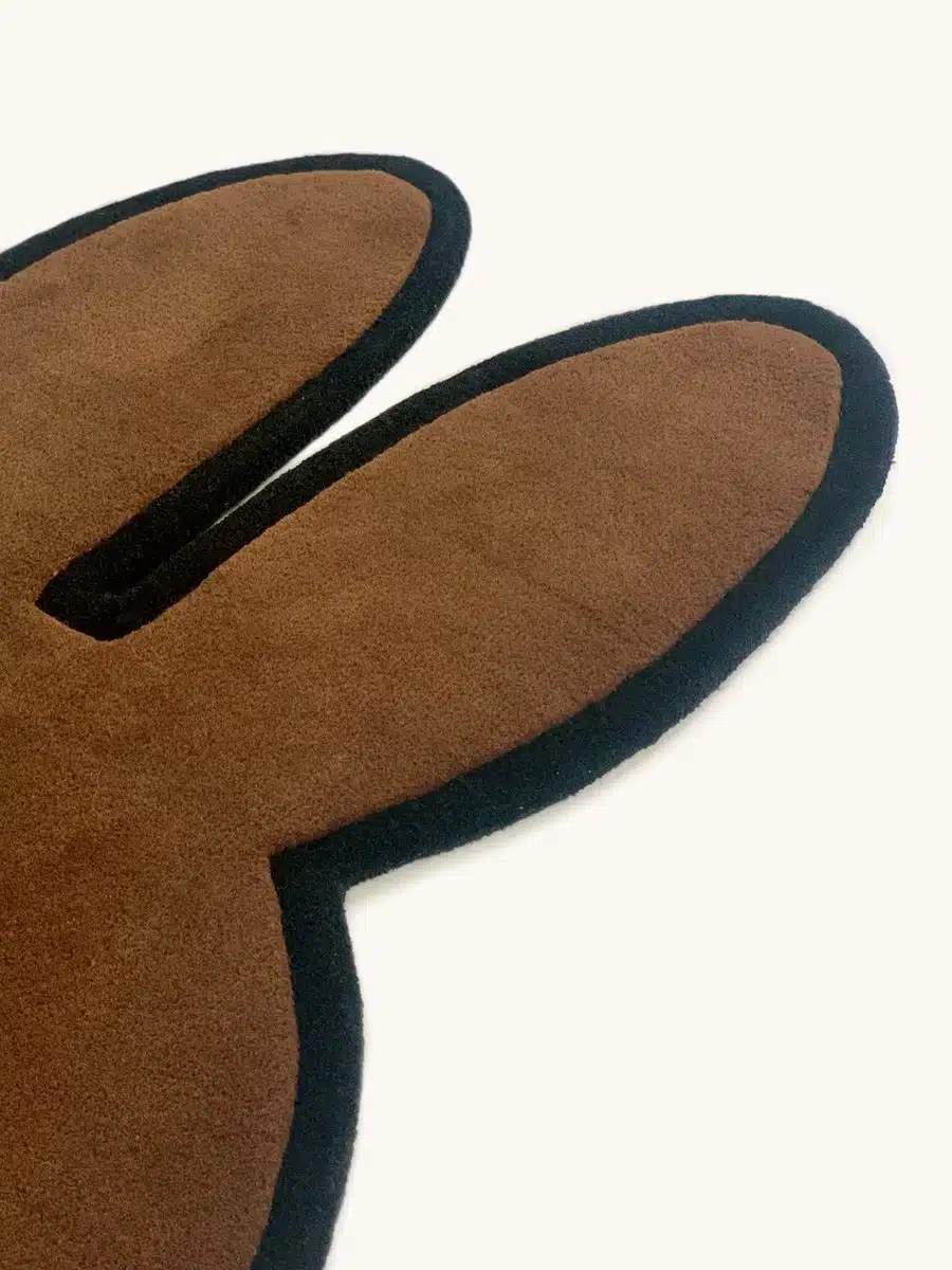 De verschillende poolhoogtes creëren een 3D reliëf dat de nadruk legt op de iconische details van het konijn.