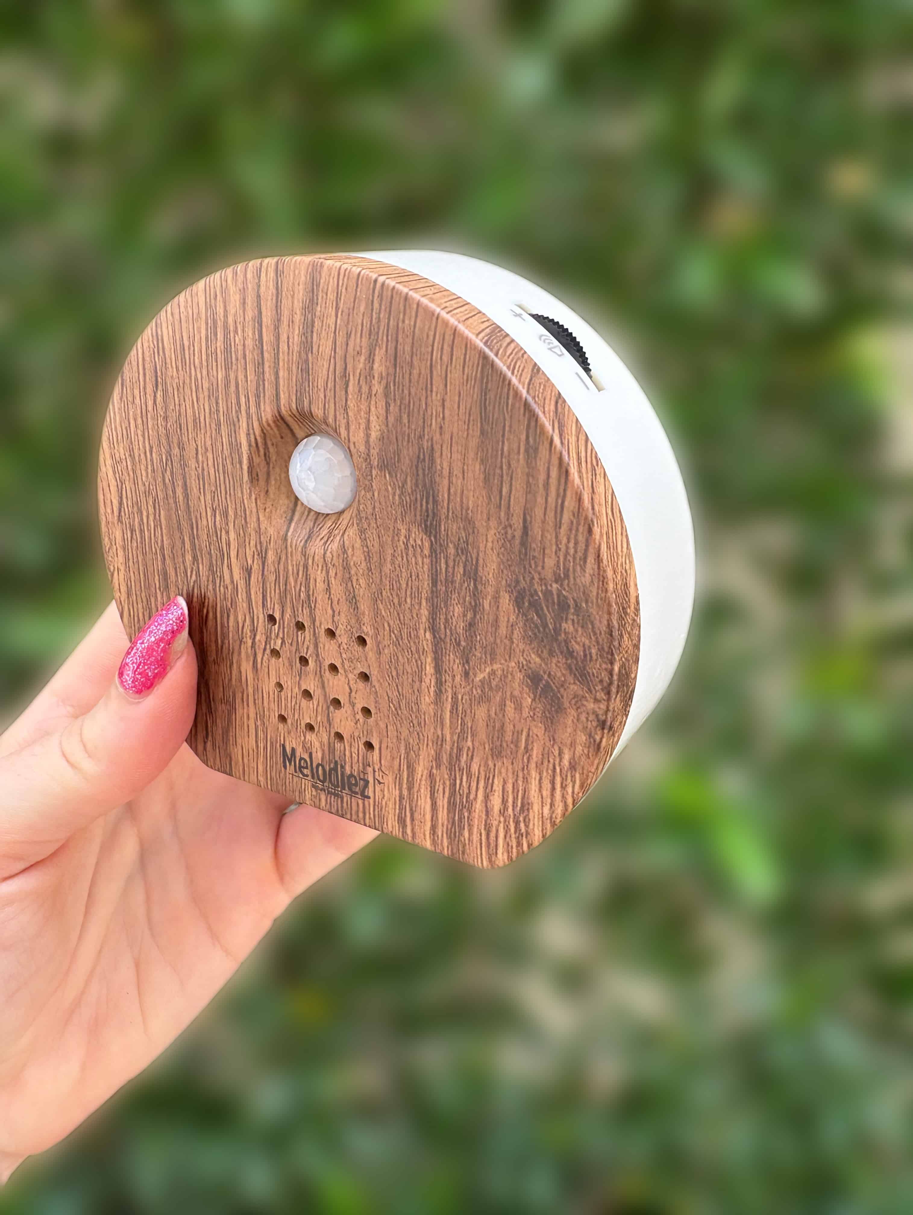 De Melodiez Melody Nature Box brengt rust in elke ruimte met 3 ontspannende natuurgeluiden, een bewegingssensor en stijlvol design.