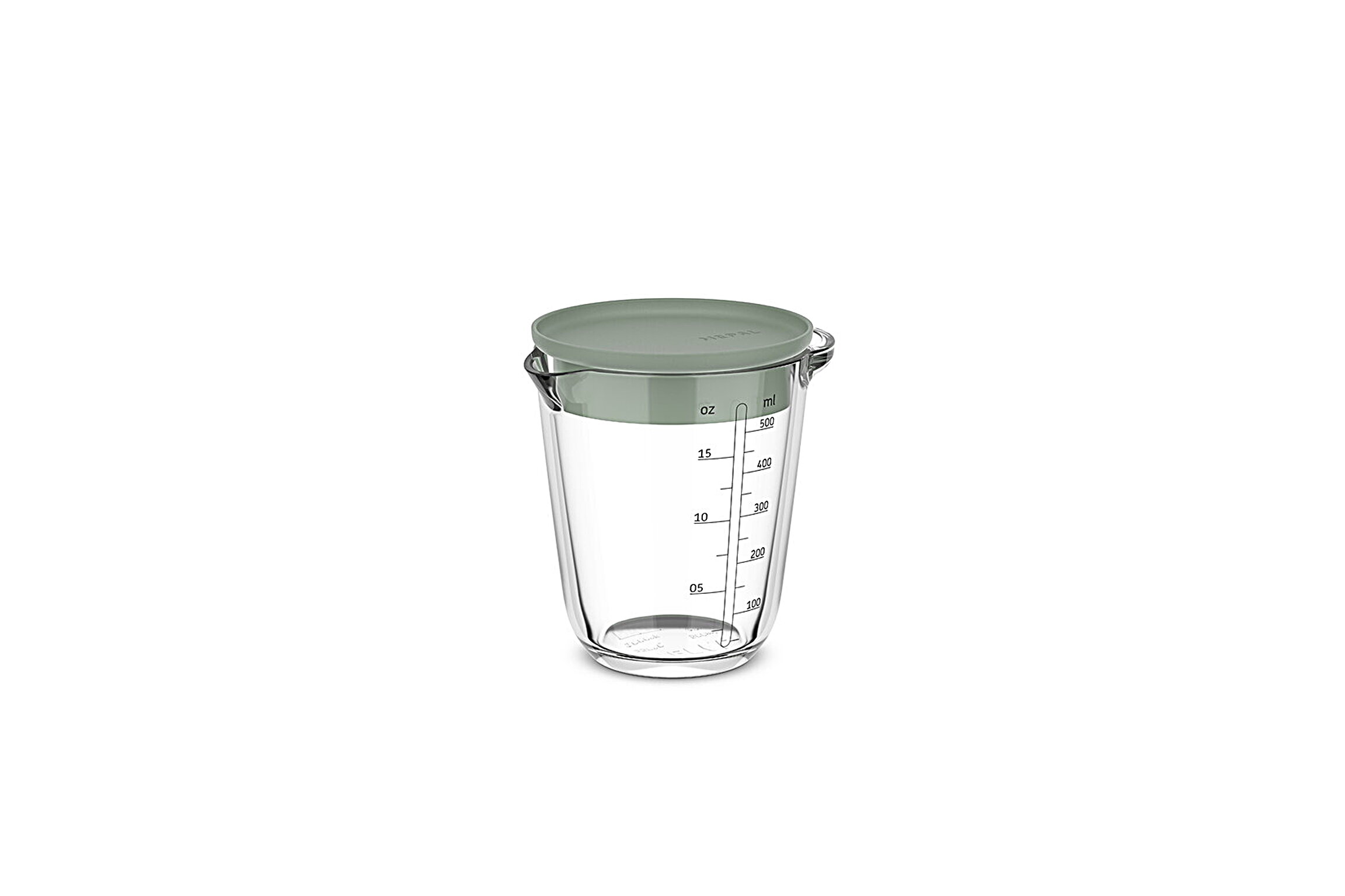 Glazen maatbeker met deksel 500ml.