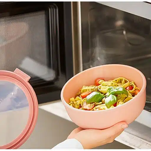 schalen in de koelkast of de vriezer, warm het op in de magnetron (deksel