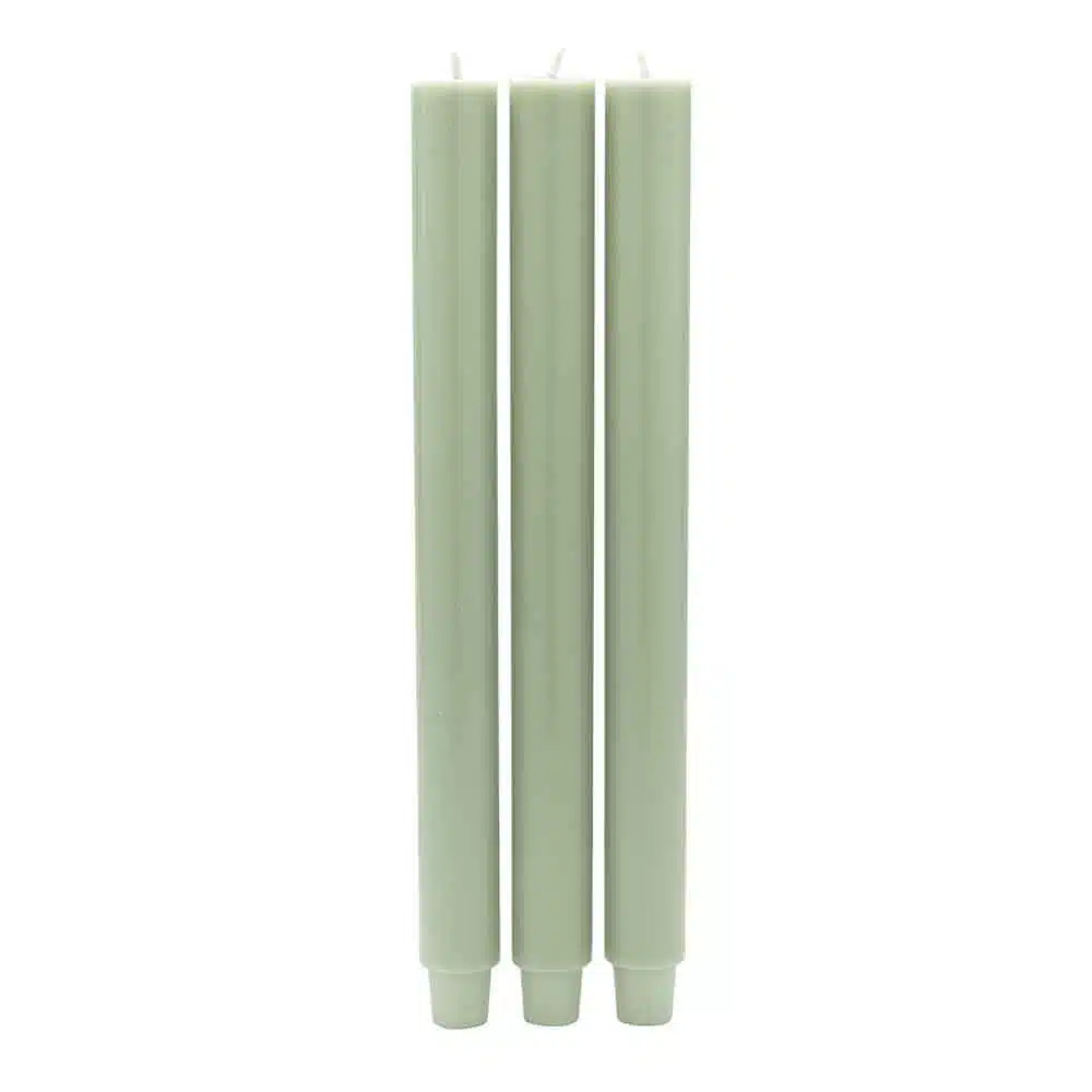 Lange kaarsen in een zachte, groene kleur