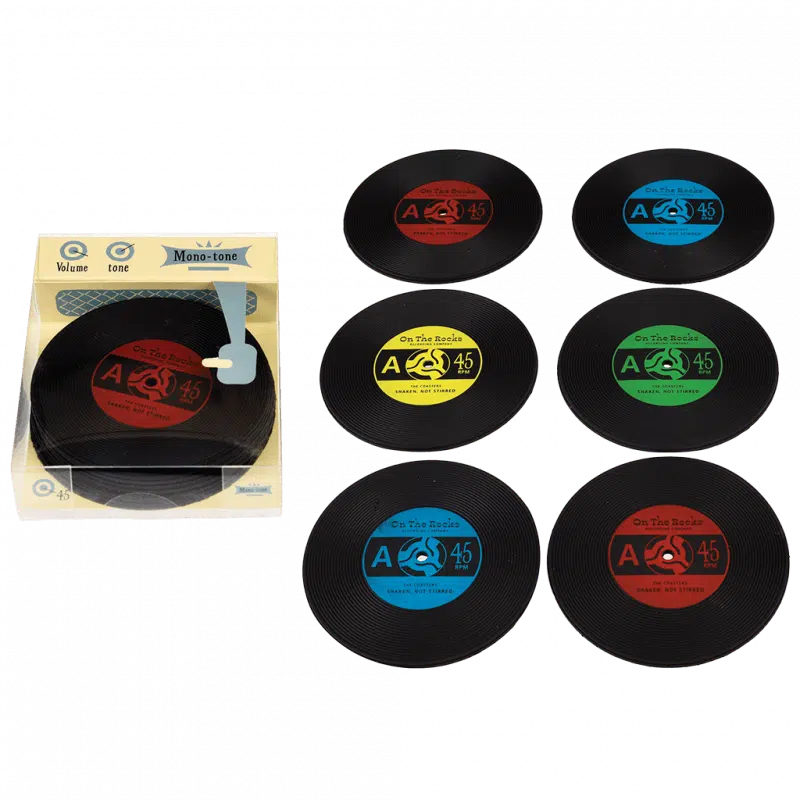 Een geweldig cadeau voor muziekliefhebbers, deze set van zes siliconen vinyl onderzetters.