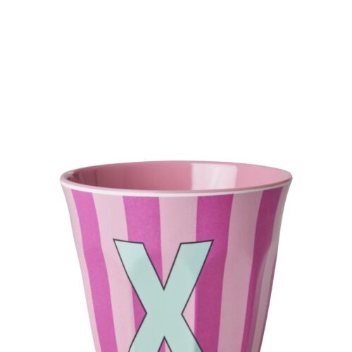 RICE Melamine beker letter X roze thema strepen