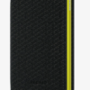 Mat zwart met geel sticksel aan de buitenkant. de binnenkant is geel met een zwarte cardslider.