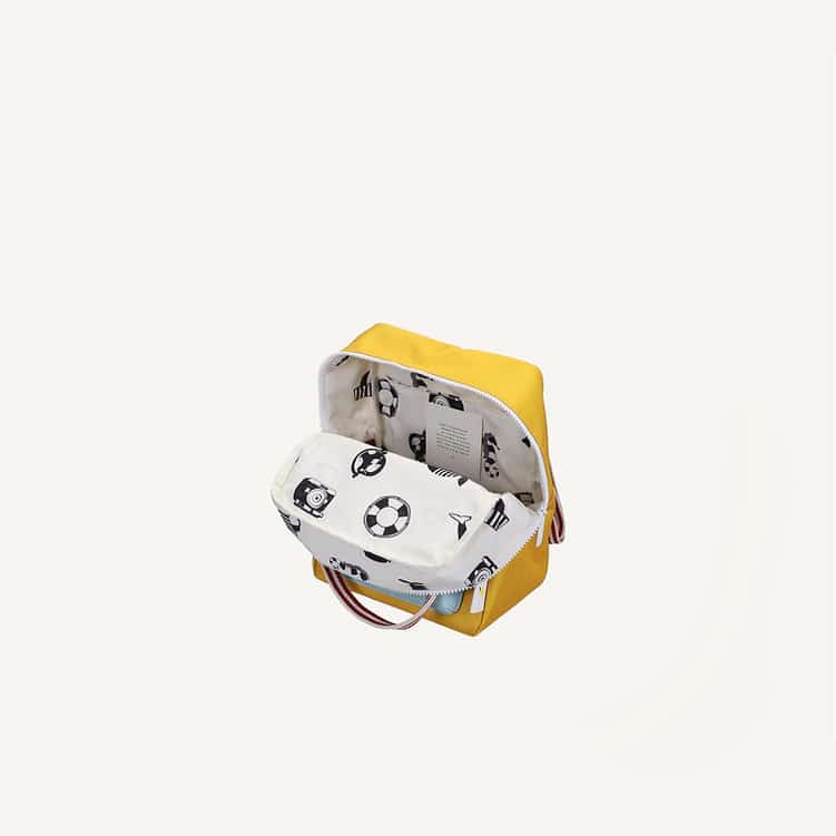 Met een bonte mix van kleuren, een uniek handgetekend patroon aan de binnenkant en waterdichte voering is deze tas niet alleen super leuk, maar ook praktisch. Voorop zit een extra vak, de schouderbanden zijn verstelbaar, en binnenin vind je een elastische fleshouder, een ruim achtervak met klittenband én een naamlabel. Perfect voor kleine avonturiers die graag de wereld verkennen!