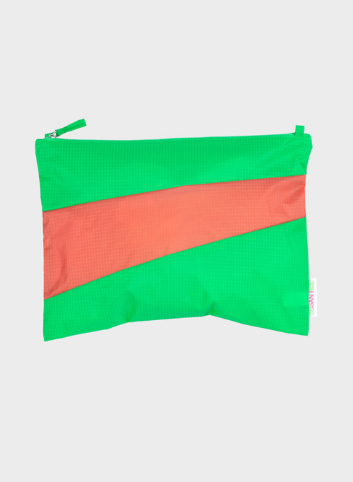 SUSAN BIJL Pouch M greenscreen & salmon + Strap greenscreen