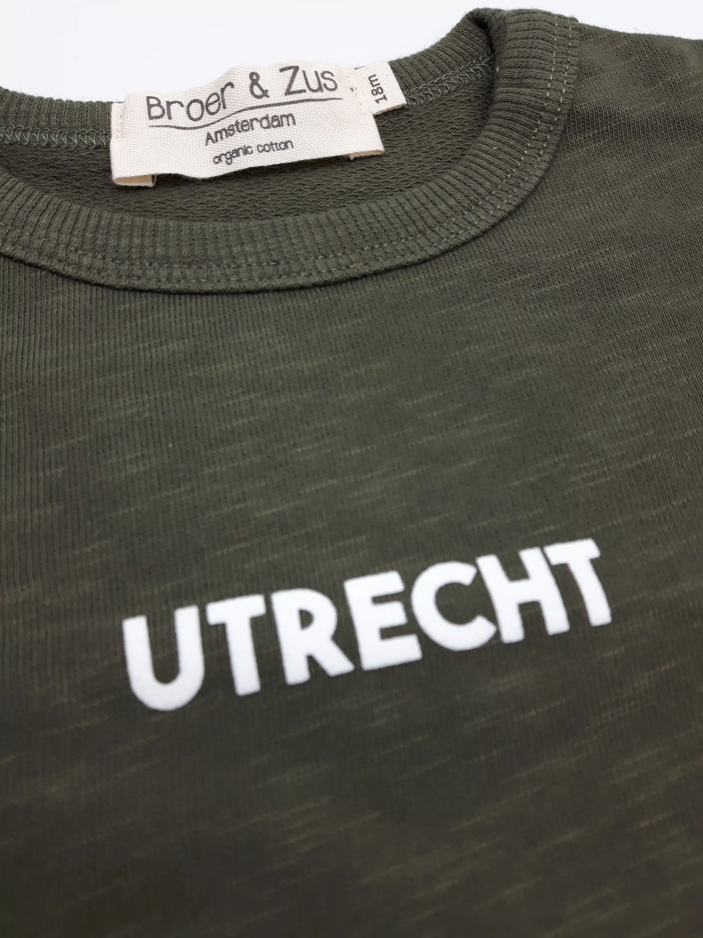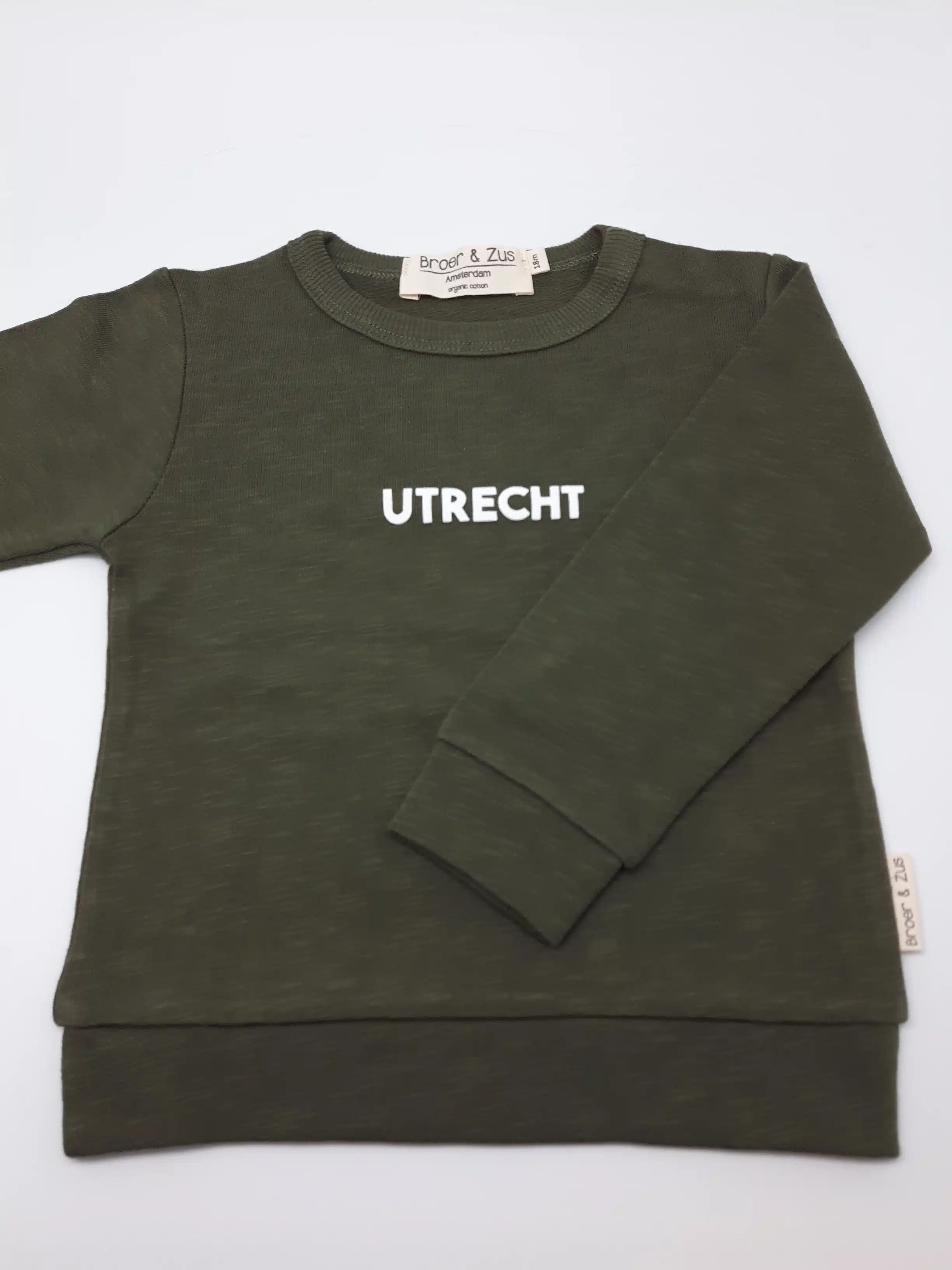 De sweater is gemaakt van zacht biologisch katoen, En heeft Utrecht op