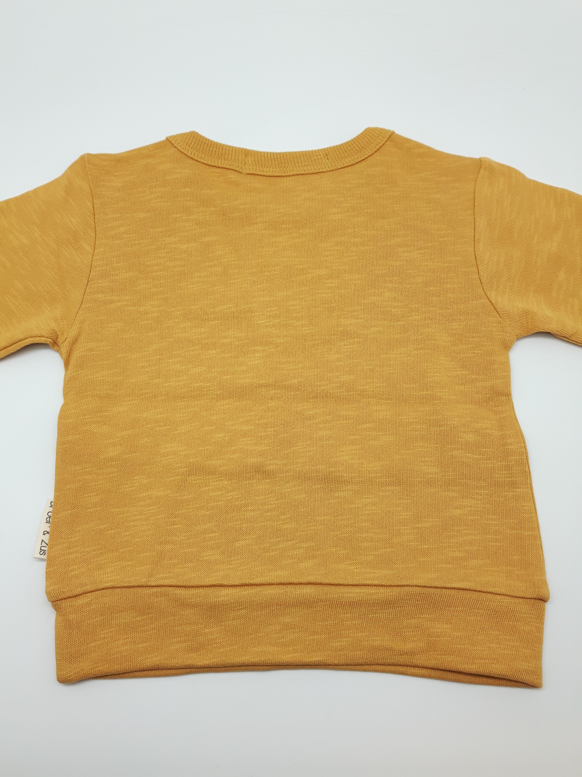 Lief baby truitje in de kleur mosterd en navy, van het merk Broer & Zus.