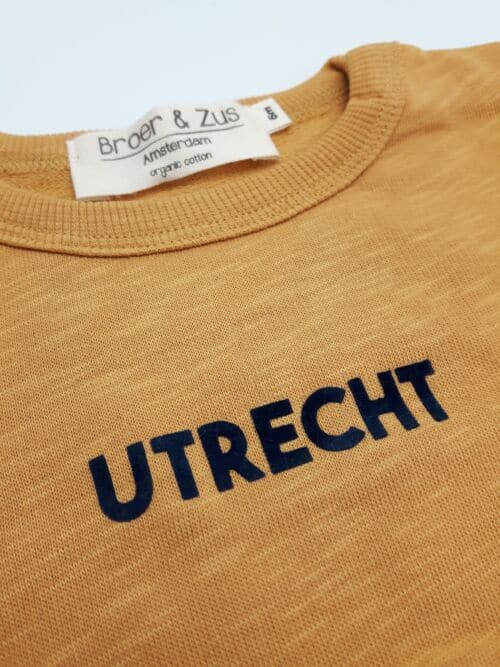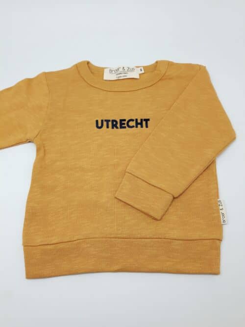 De sweater is gemaakt van zacht biologisch katoen, En heeft Utrecht op
