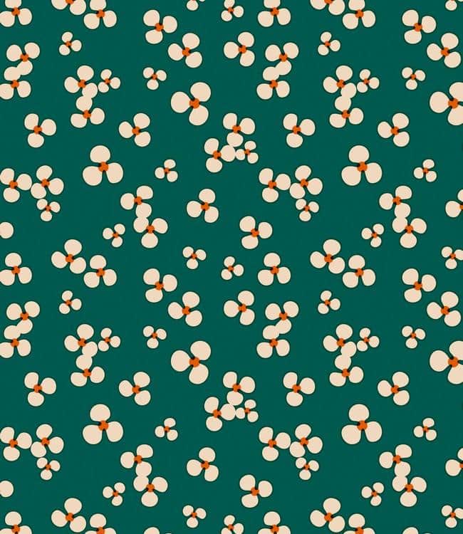 Lola Tafelzeil, emerald met bloemenprint. Gemaakt van geprint pvc met zachte non woven vliesrug 140 cm breed.