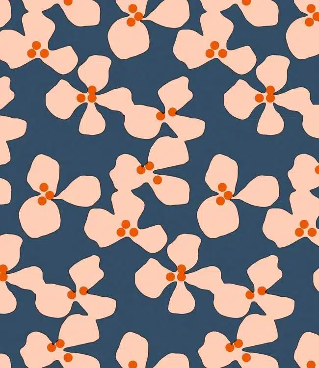 Lola Tafelzeil, Blauw met bloemenprint. Gemaakt van geprint pvc met zachte non woven vliesrug 140 cm breed.