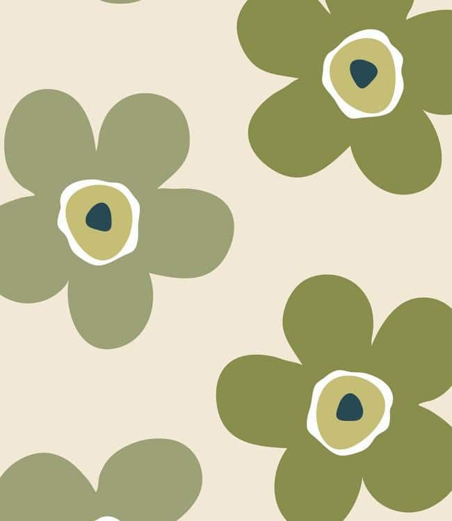Lola Tafelzeil, beige met groene bloemenprint. Gemaakt van geprint pvc met zachte non woven vliesrug 140 cm breed.
