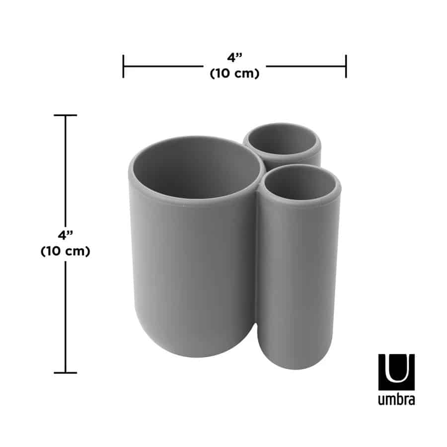 Deze mooie tandenborstel houder van Umbra hoort bij de Touch serie en is met zijn mooie ronde vormen en eenvoud een ware toevoeging in de badkamer. De beker heeft 3 openingen waarvan 2 iets kleiner en 1 iets grotere opening waar bijvoorbeeld een elektrische tandenborstel, of een tube tandpasta in kan. Ook verkrijgbaar in andere kleuren.