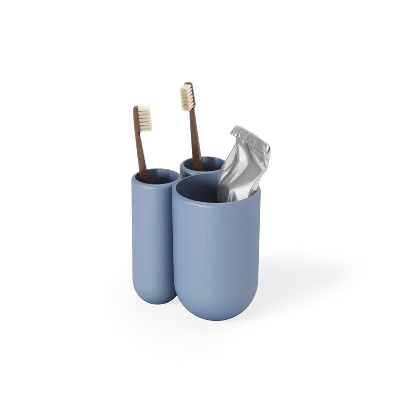 Deze mooie tandenborstel houder van Umbra hoort bij de Touch serie en is met zijn mooie ronde vormen en eenvoud een ware toevoeging in de badkamer. De beker heeft 3 openingen waarvan 2 iets kleiner en 1 iets grotere opening waar bijvoorbeeld een elektrische tandenborstel, of een tube tandpasta in kan. Ook verkrijgbaar in andere kleuren.