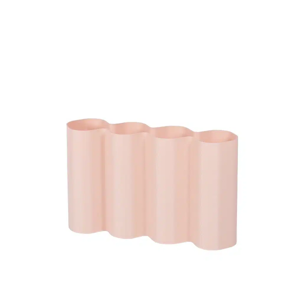 Deze vaas wordt gemaakt van gerecyclede plastic flessen en verpakkingen van etenswaren. In de studio van Warren & Laetitia is de speelse set vazen ontwikkeld in de maten S, M, L en XL, in een reeks vrolijke kleuren. Ga jij voor een combinatie van kleuren of hou je het liever monochroom?